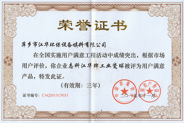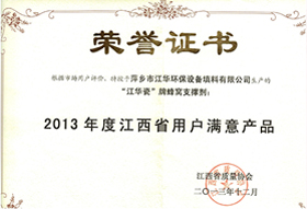 2013年用戶滿意產(chǎn)品證書(蜂窩陶瓷)