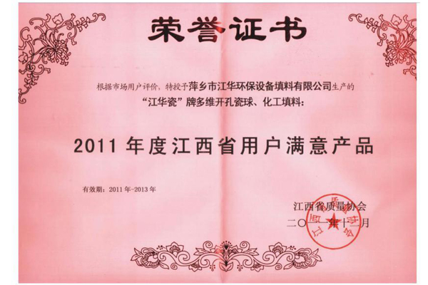 2011年用戶滿意產(chǎn)品(多維開孔瓷球、化工填料)