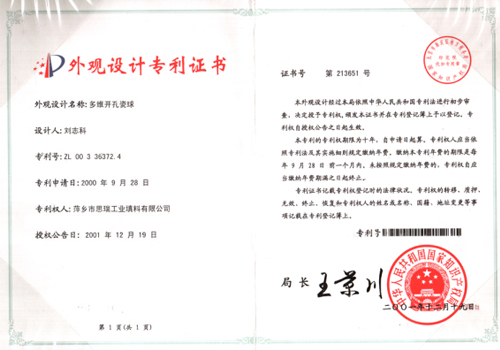 槽式瓷柱填料專利證書生產(chǎn)基地:江西省萍鄉(xiāng)市湘東區(qū)產(chǎn)業(yè)園B區(qū)1-188號