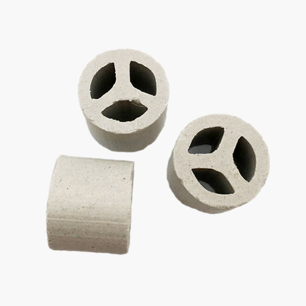 陶瓷三丫環(huán)填料是一種經(jīng)外觀獨特設計加工成的一種新型高效散堆填料,產品高徑比約為2:1,內部設有一個或三個“Y”型隔板,這樣增大比表面積,提高了汽液分散性能,使汽液接觸更充分。三丫環(huán)填料是從階梯環(huán)、共鉅環(huán)、扁環(huán)、矩鞍環(huán)的基礎上以及在形狀、外觀和結構綜合考慮,進行取長補短而改進的。