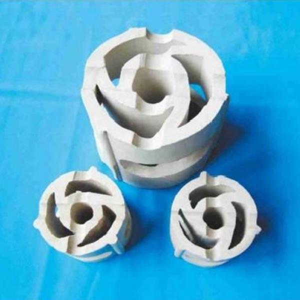 陶瓷車(chē)輪環(huán)是在吸取多種常規(guī)陶瓷散堆填料產(chǎn)品(鮑爾環(huán)、異鞍環(huán)、階梯環(huán)等)的優(yōu)點(diǎn),經(jīng)多次實(shí)驗(yàn)后而研制而的新型陶瓷填料,它是由多條均勻排列的曲徑及兩圓筒構(gòu)成的一個(gè)整體,在外圓筒上大開(kāi)孔,兩圓筒上下底開(kāi)缺。車(chē)輪環(huán)工藝改形產(chǎn)品兩圓筒上下底不開(kāi)缺。我公司生產(chǎn)的陶瓷車(chē)輪環(huán)填料因采用高嶺土、長(zhǎng)石、石英等為主要原料經(jīng)精心配料,再經(jīng)成型、干燥、1300℃高溫?zé)桑a(chǎn)品完全瓷化,機(jī)械強(qiáng)度好,具有優(yōu)異的耐酸耐熱性能,能耐除氫氟酸以外的各種無(wú)機(jī)酸、有機(jī)酸及有機(jī)溶劑腐蝕,可在各種高溫場(chǎng)合使用