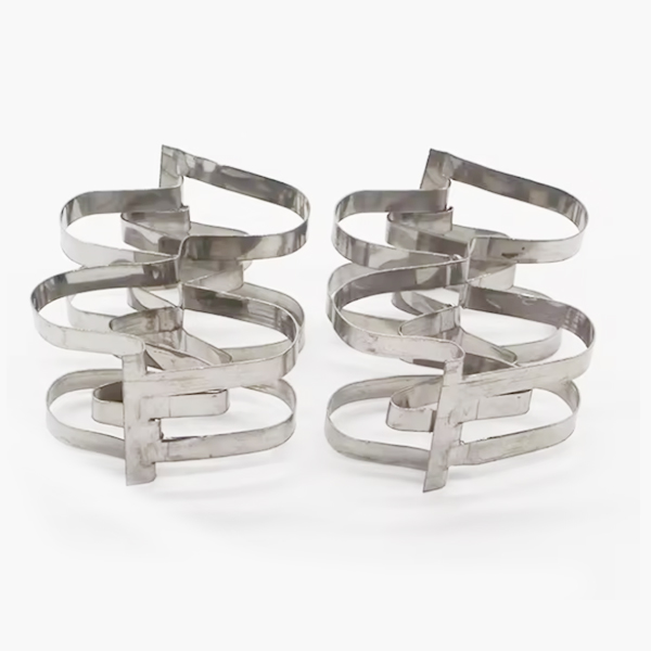 金屬雙層共軛環(huán)又叫金屬超級(jí)拉西環(huán)、異拉西環(huán),該填料主要材質(zhì)有碳鋼、鋁合金、不銹鋼201、301、304、321、316、316L等材質(zhì)。該產(chǎn)品相對(duì)于其他傳統(tǒng)介質(zhì)的擁有超過(guò)33%的負(fù)載能力,幾乎67%為低壓力下降超過(guò)12%提高分離效率。其結(jié)果是在能源和降低投資成本。該產(chǎn)品可直接替代廣泛使用的拉西環(huán)填料。